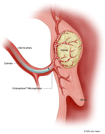 Há alguns anos, o cirurgião vascular vem colaborando no tratamento de alguns desses pacientes através da embolização uterina. Neste procedimento, que fazemos com anestesia raquidiana, através da punção da artéria femoral junto à virilha, um cateter é introduzido e dirigido para a artéria uterina, principal nutridora do útero.